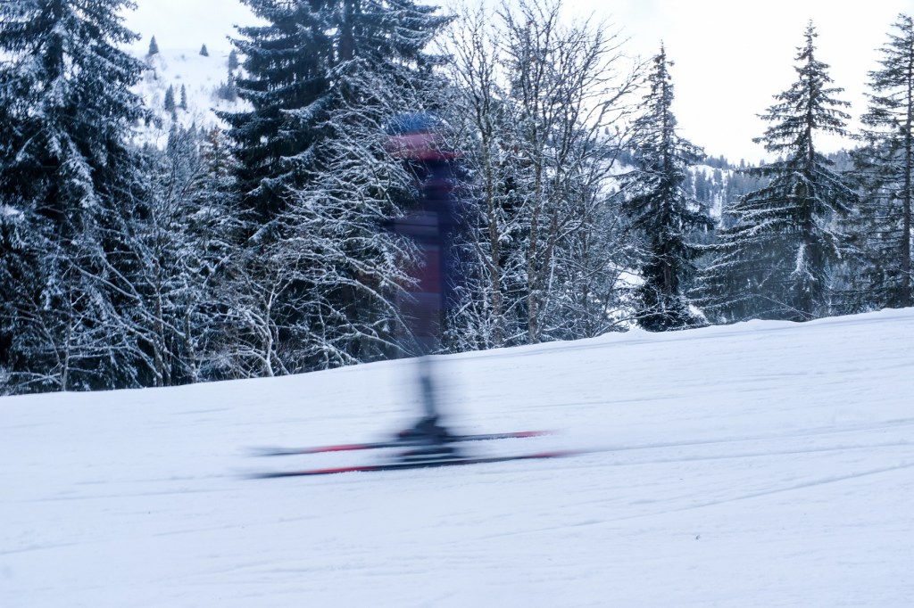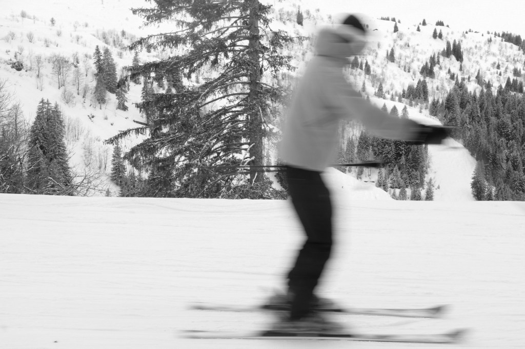Shutter speed 1/40 F stop 16 ISO 200 – blurred moving skier, slow shutter speed